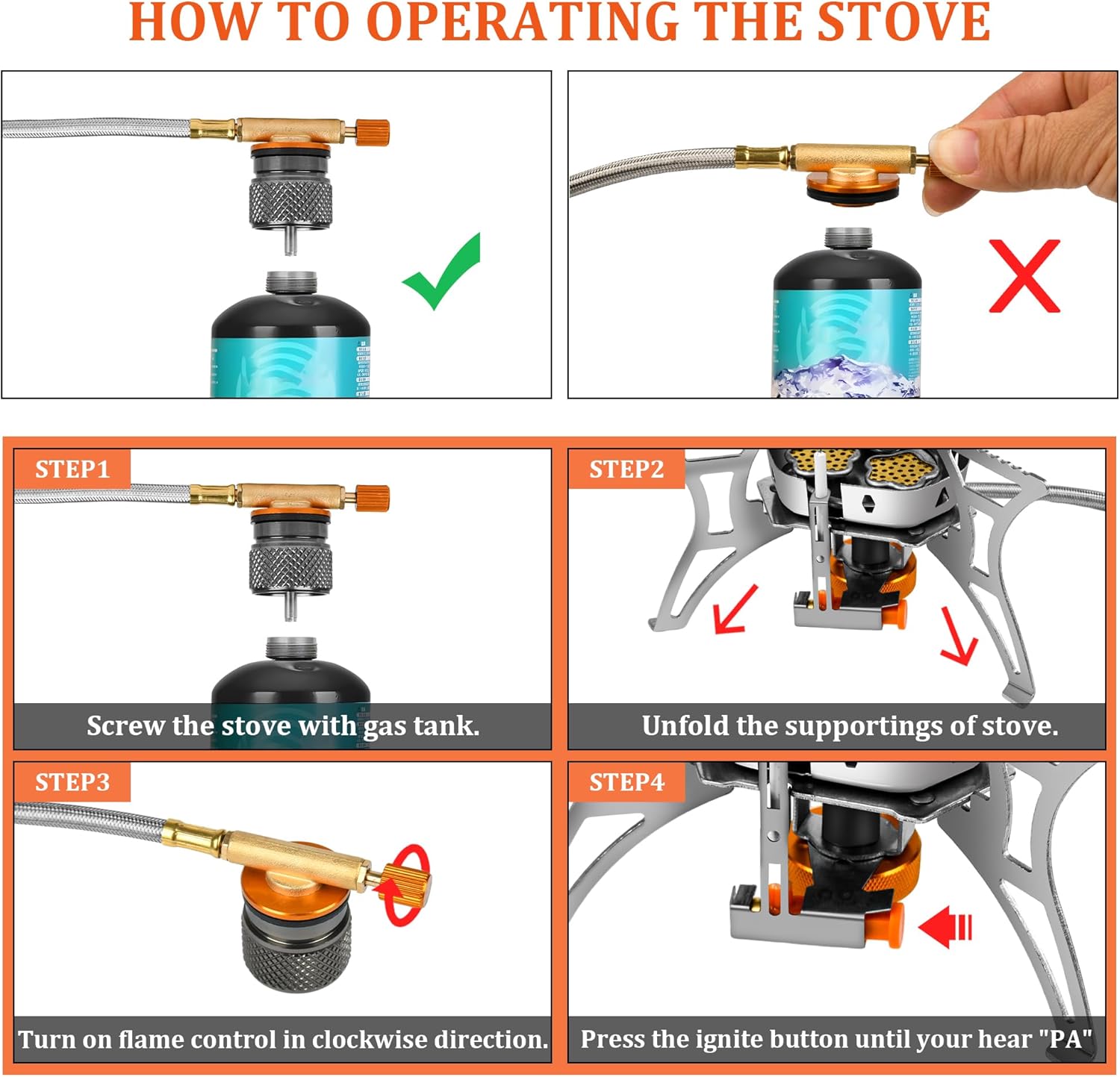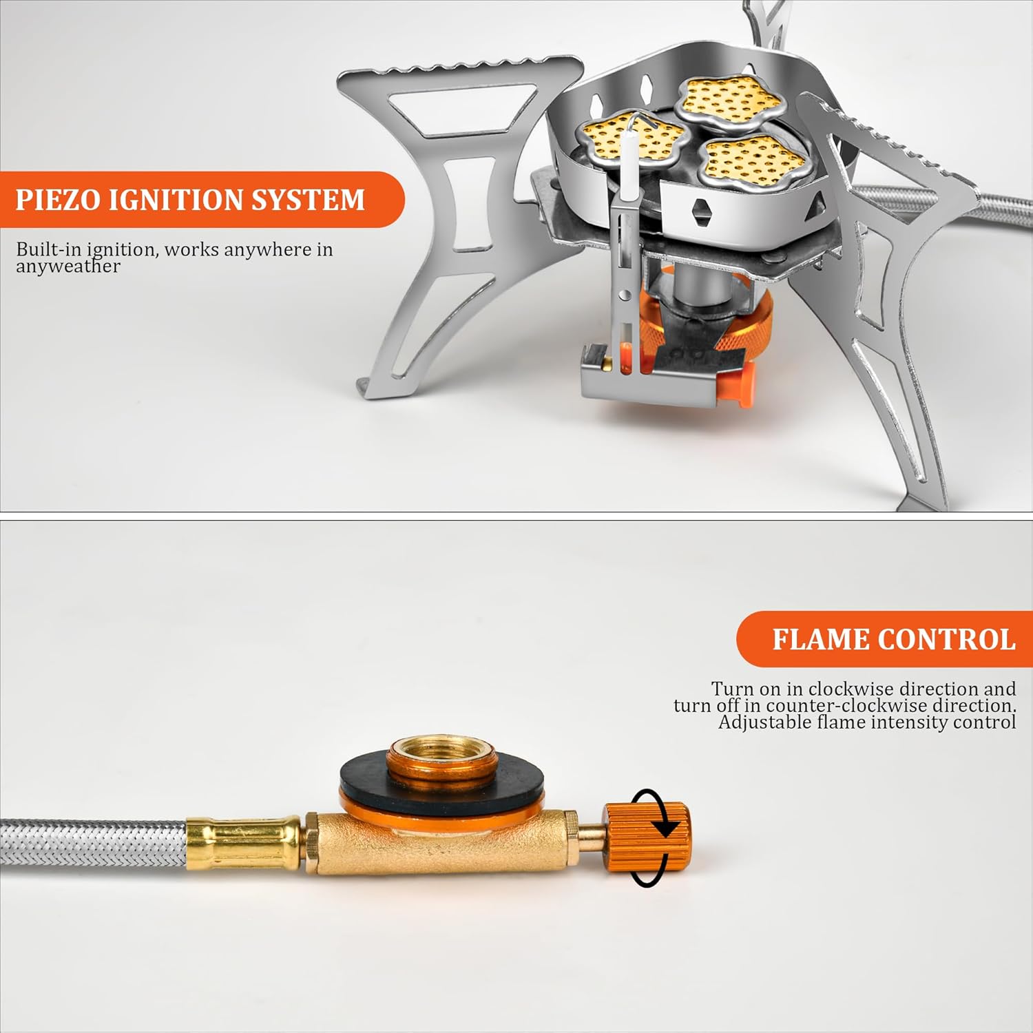 Featuring a powerful 6800W output, this camping stove ensures quick and efficient cooking, even in windy conditions. The piezo ignition system allows for easy and reliable ignition, so you can start cooking your favorite meals in no time. With the included fuel canister adapter, you can use a variety of fuel sources to keep your stove running wherever your travels take you.
